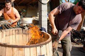 Hordókészítés során az összeállított dongákat égetéssel hajlítjuk és pörköljük.